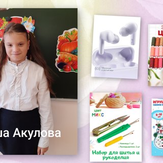 Замечательная девочка Мария Акулова – ученица 5 класса Она учится на «4» и «5», всегда старательна и активна на уроках. А самое главное – она готова прийти на помощь тем, кто в этой помощи нуждается. За это любят и уважают Машу одноклассники. Маша воспитывается в многодетной семье, где год назад не стало мамы. В семье появилась мачеха, которая нашла подход к детям! Маша называет Анастасию Валерьевну мамой и хорошо отзывается о ней. Девочка любит заниматься рукоделием под музыку. Мечтает о наушниках, чтобы слушать музыку не мешая остальным членам своей семьи, а также о разных портновских «штучках» (инструментах, наборе ниток, фетровых аппликаций и так далее).