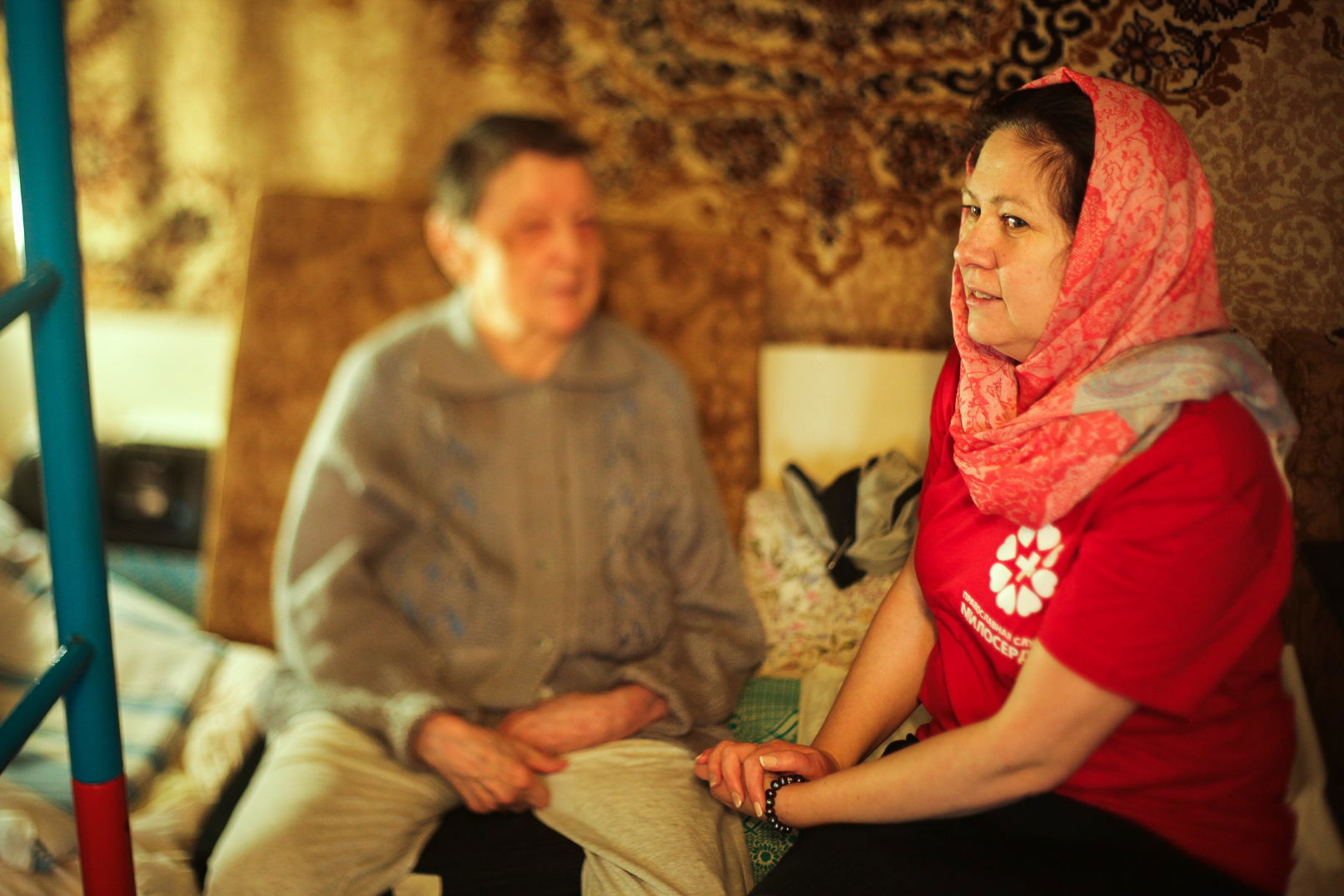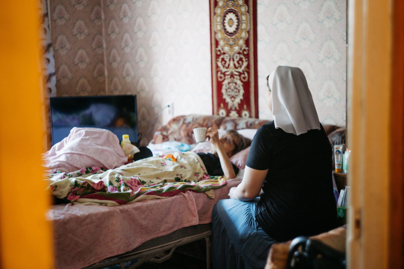 Уход за подопечными в тяжелом состоянии осуществляется силами сестер милосердия, добровольцы организуются на несложный уход и бытовую помощь. По желанию подопечного на дом приезжает священник для совершения Таинств Исповеди и Причастия, Соборования. Специально подготовленные сестры милосердия (катехизаторы) помогают в изучении православной веры и подготовки к таинствам.