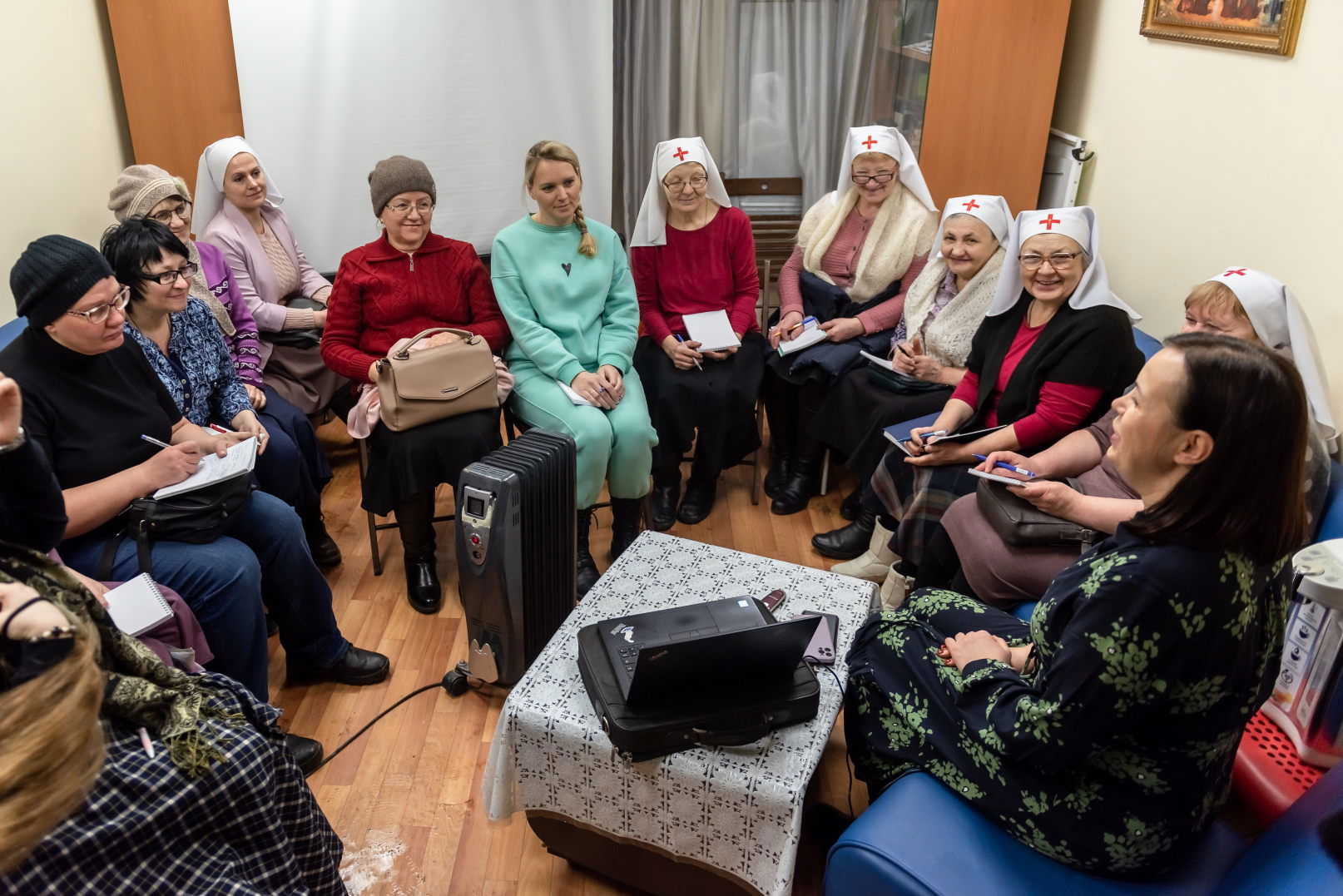 Для оказания более эффективной и профессиональной помощи наши сестры и добровольцы проходят регулярное обучение («Младшая медицинская сестра по уходу», «Школа навыков ухода за тяжелобольными» и др).