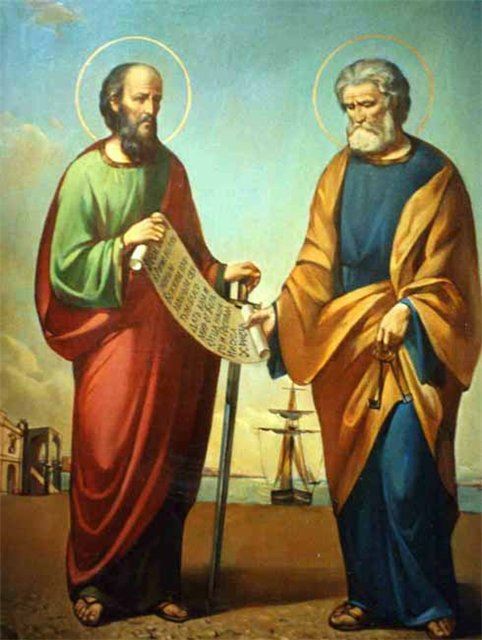 Церковь прославляет апостола Петра как предначавшего из лика апостолов исповедать Иисуса Христа Сыном Бога живаго Павла же яко паче иных потрудившегося и причисленного к высшим из апостолов Духом Святым (2 Кор. II, 5) одного - за твердость, другого - за светлую мудрость.