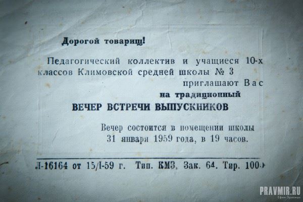 Работница ЗАГСа сказала, что если нам прямо так срочно надо, то можно расписаться через три дня в открывающемся Дворце бракосочетания на улице Грибоедова, там телевидение будет снимать. Дали нам пригласительные, направление в магазин и ателье. И поехали мы с этими красивыми пригласительными ко мне домой, в Климовск и вручил их родителям: «Папа, мама, вот вам пригласительные во Дворец бракосочетаний».