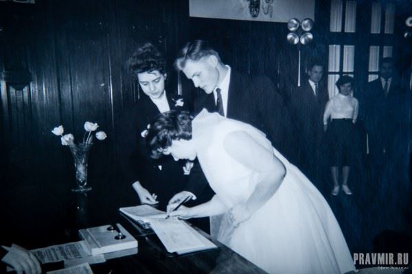 Г.Ф.: Свадьба состоялась 21 февраля 1961 года. Мне было 23 года, Гене шел 21-й год. Во Дворец бракосочетания мы поехали на метро. Как там было красиво! Кругом розы, украшенные залы — зал жениха, зал невесты…