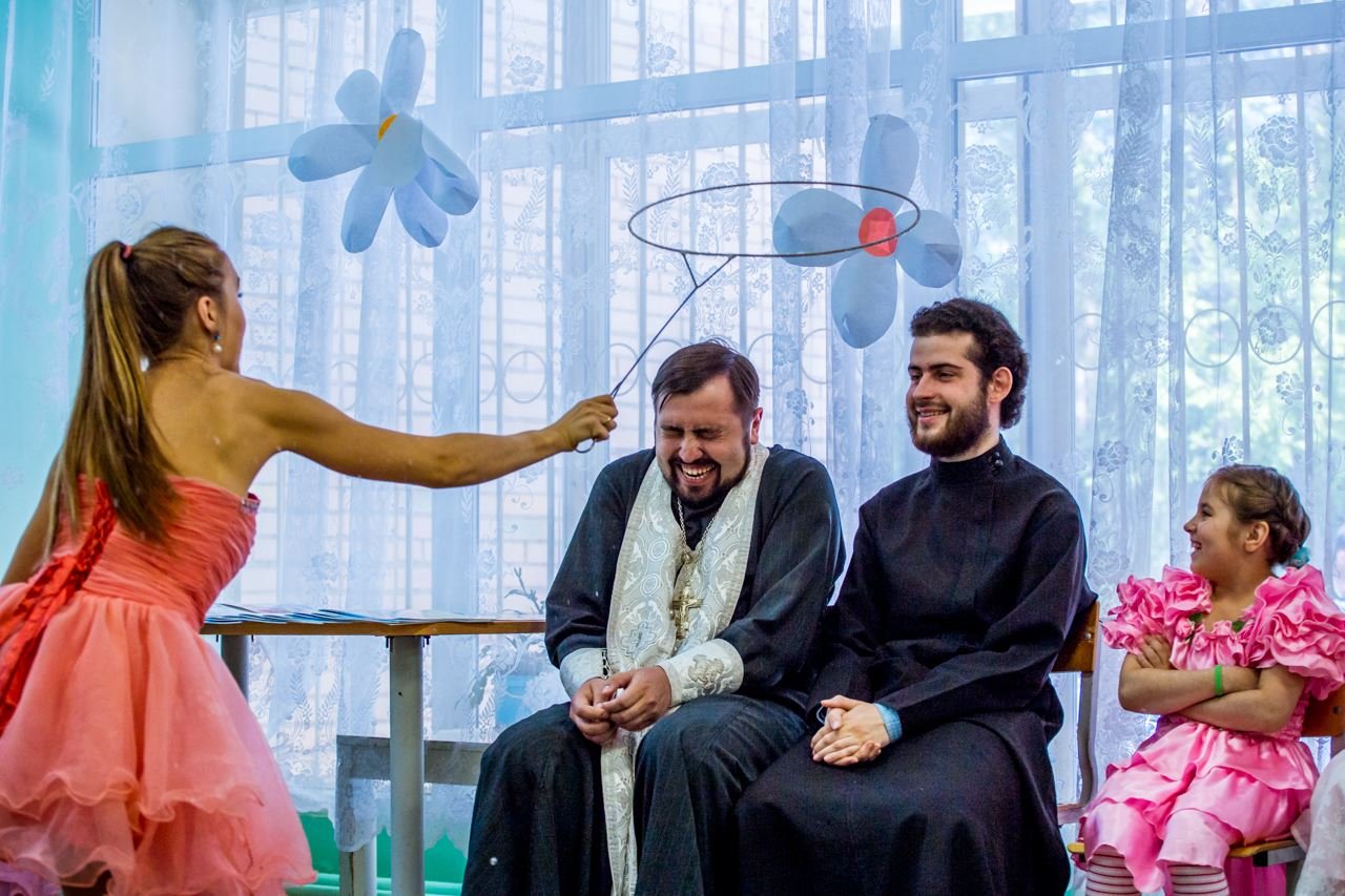 В начале 2014 года артисты-добровольцы отправились поздравлять с Рождеством Христовым подопечных детей из подросткового отделения. Отправились, да сбились с дороги – отделения затерялись среди зимнего темного соснового леса. Ребята заблудились и свернули не на ту тропинку и попали вроде бы не туда, но как все промыслительно! В незнакомом учреждении нас встретили очень тепло и радостно, и показали... стоящие на полочке в детской игровой комнате иконы, которые давным-давно, 10 лет назад подарил сотрудникам отец Евгений Попиченко, руководитель и духовник Православной Службы Милосердия. Так и началась, а точнее возобновилась наша дружба.
